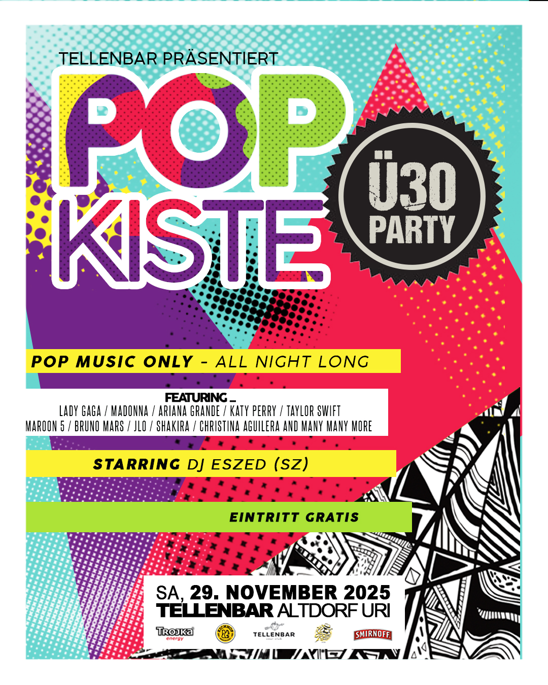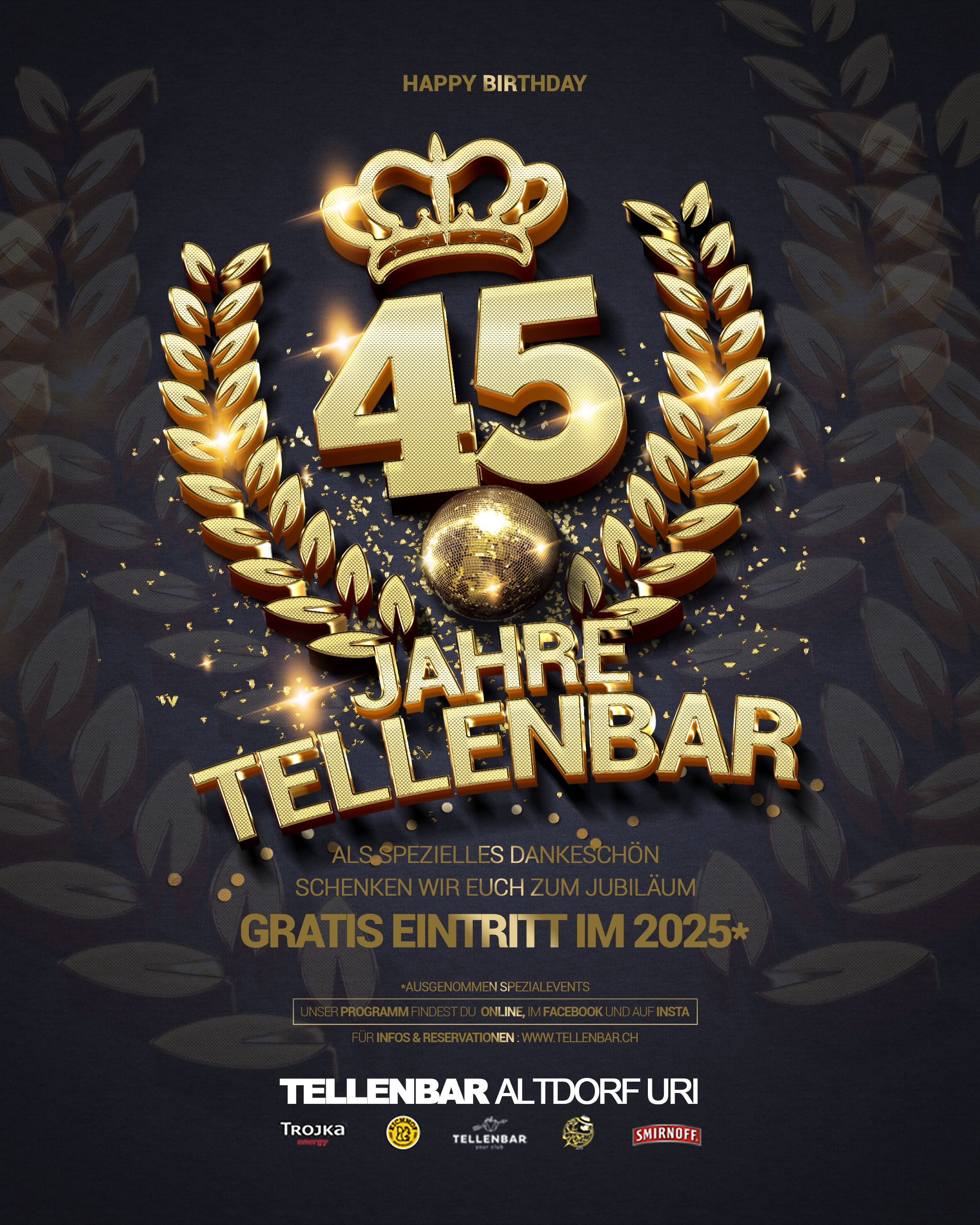 Partys und Events in der Tellenbar sind Magnet für Junge und Junggebliebene aus Uri und den umliegenden Regionen. Das Eventlokal überzeugt mit abwechslungsreichen und originellen Veranstaltungen und lässt das Nachtleben in Altdorf pulsieren.